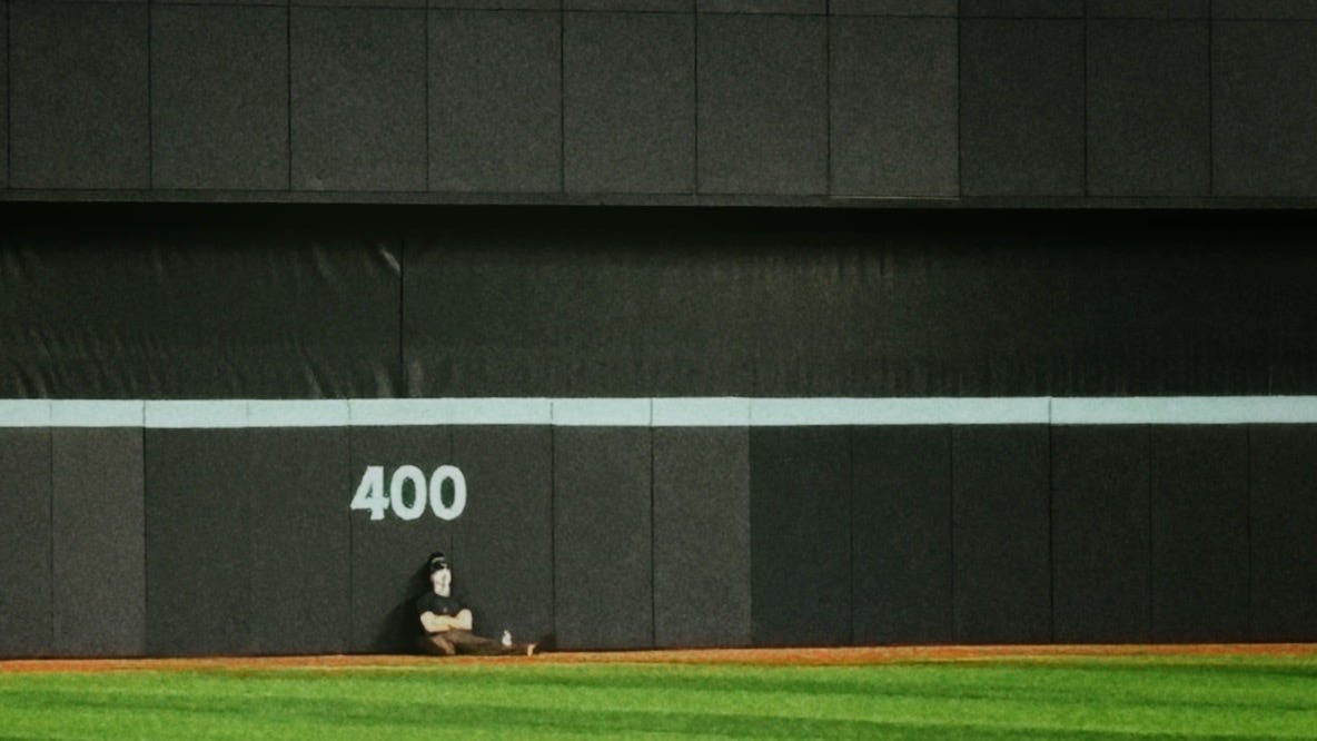 As mentioned in the caption on the photo above, that’s Bryce Miller pregame, probably before BP, sitting at the base of the outfield wall and preparing himself for the biggest outing of his career to date.