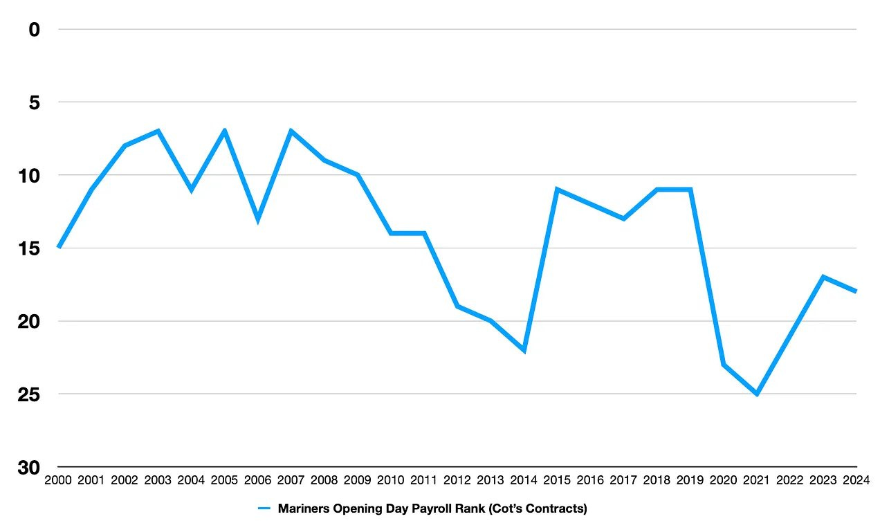 It’s where the Mariners rank, relative to their peers, in Opening Day payroll.