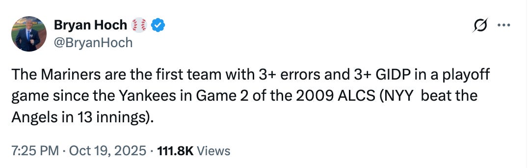 I’d rather not spend too much time thinking about how the Mariners only needed to win two of three at home—two of five total—to advance to the World Series.
